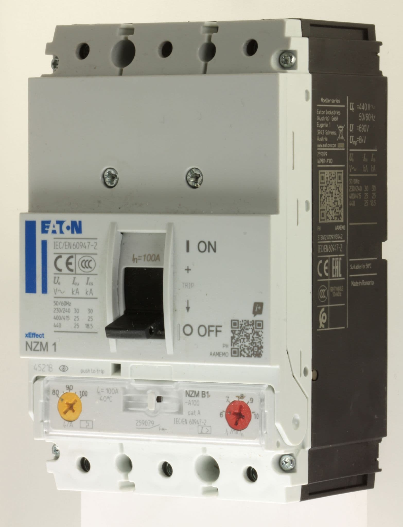 Eaton NZM 1 - 259079 NZMB1-A100 - 80 to100a Adjustable Triple Pole MCCB